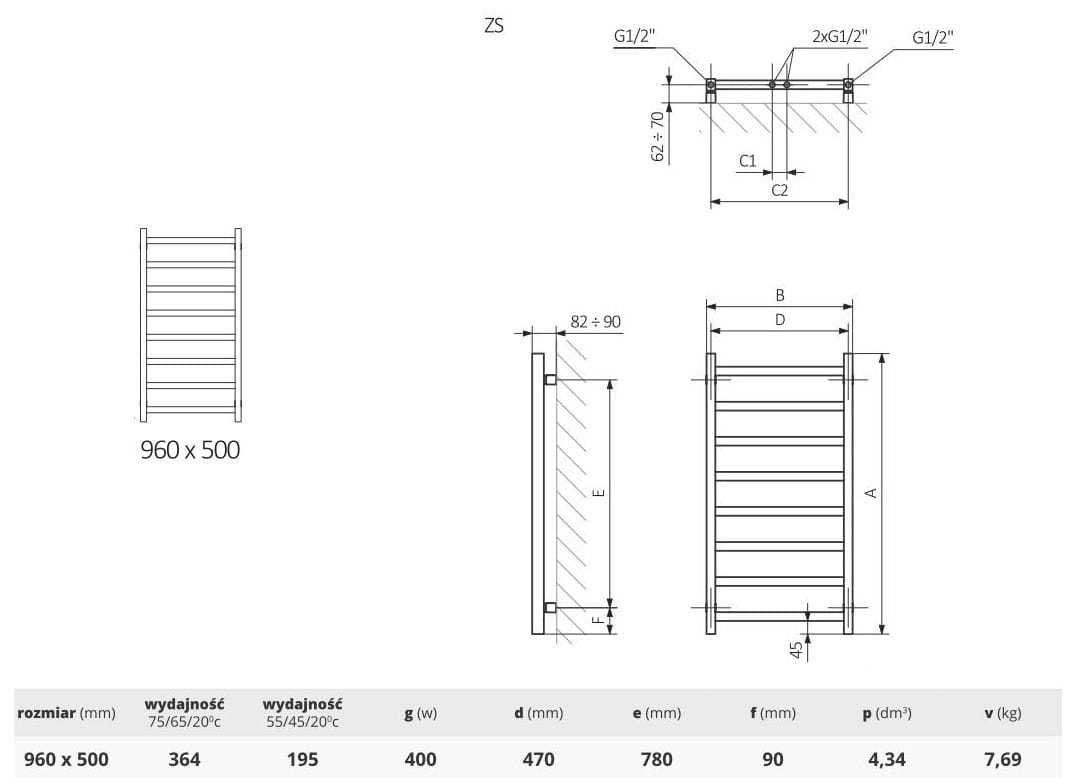 - Wysokość 960 mm