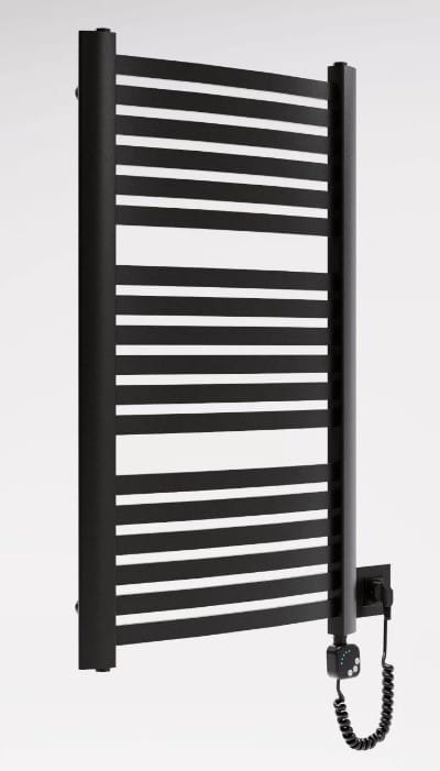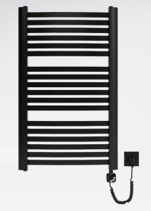 - Grzejnik i grzałka w kolorze CZARNY MAT STRUKTURA.