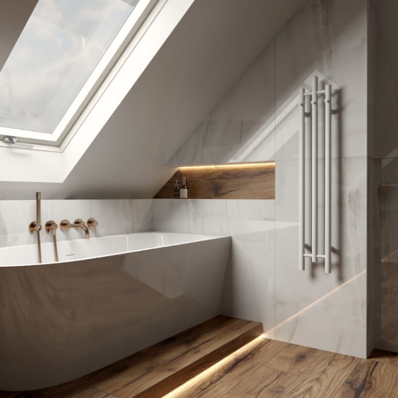 Grzejnik łazienkowy Calentador White 1200 nie tylko doskonale spełnia swoje podstawowe zadanie, czyli ogrzewanie łazienki, ale również jest niezwykle estetycznym elementem wystroju pomieszczenia.
