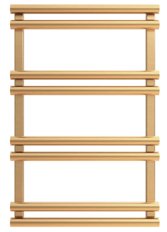 Grzejnik łazienkowy Apus firmy Sunerzha o wymiarach 75x50 w kolorze szczotkowanego złota.