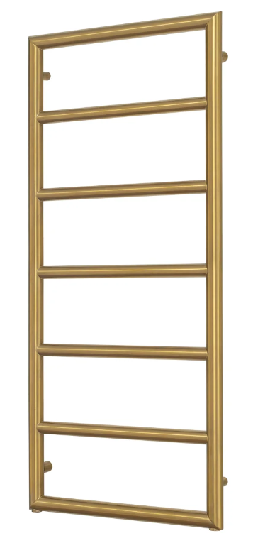 Grzejnik łazienkowy Bodes firmy Sunerzha o wymiarach 120x50 cm w kolorze szczotkowanego złota.