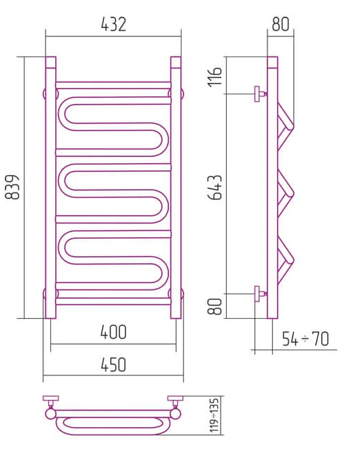 - wymiary zewnętrzne (wysokość x szerokość): 839x450 mm,
