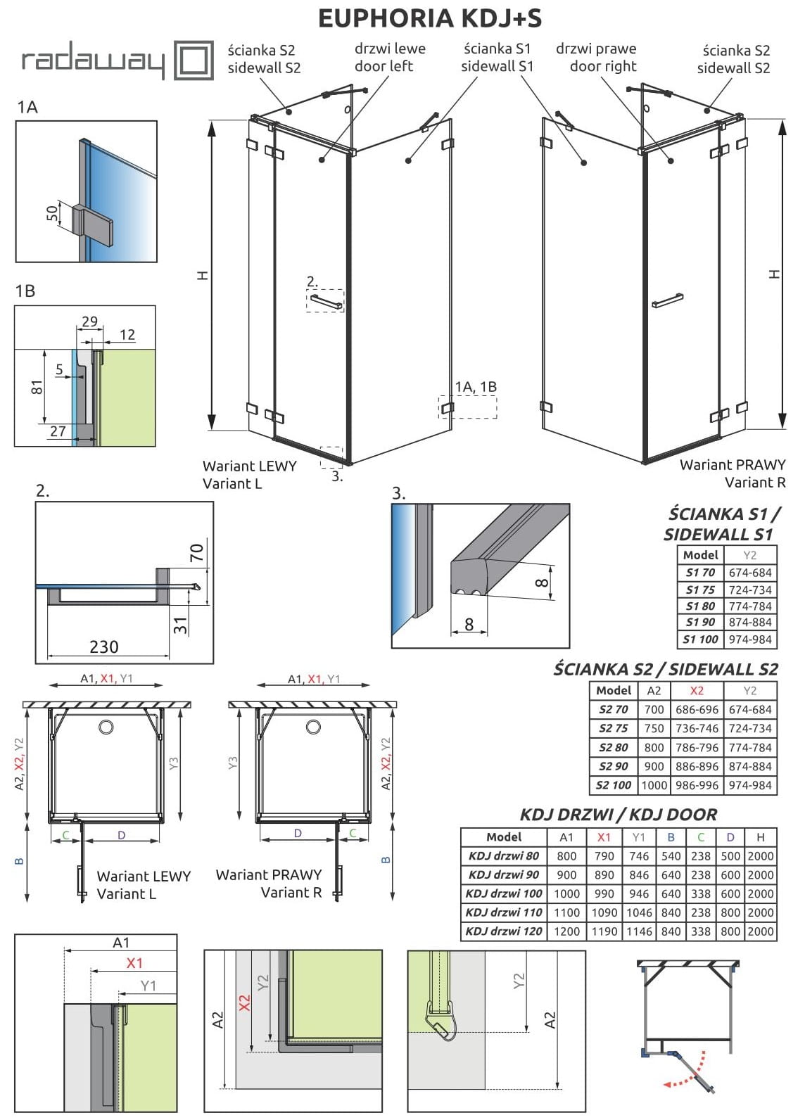 Kabina kwadratowa Radaway Euphoria KDJ+S 100x100x200 lewa, szkło przejrzyste