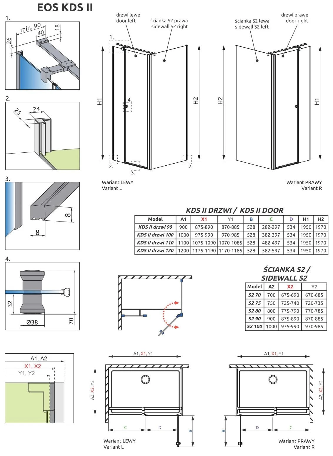 - Kabinę można zamontować na brodziku lub bezpośrednio na płytkach. Możliwość montażu bez listwy progowej.