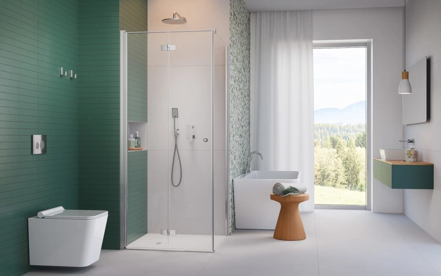 - Zawiasy zlicowane z taflą szkła – jednolita powierzchnia ułatwia utrzymanie kabiny w czystości.