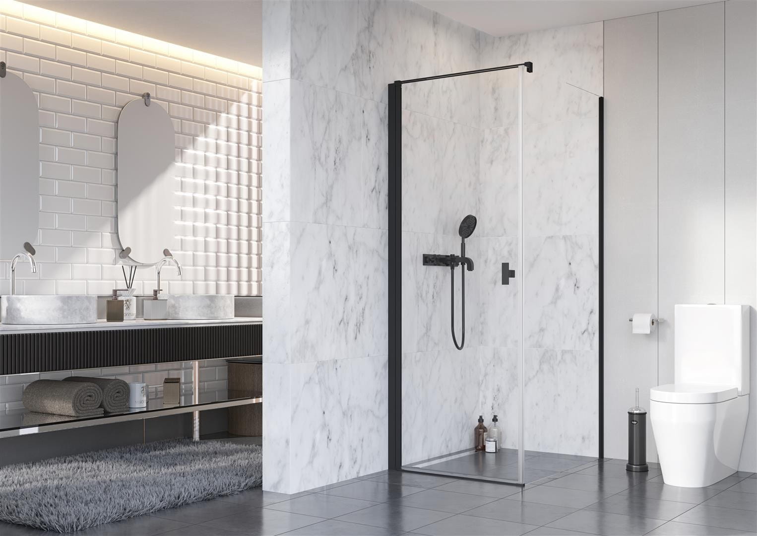 - Kabinę można zamontować na brodziku lub bezpośrednio na płytkach.