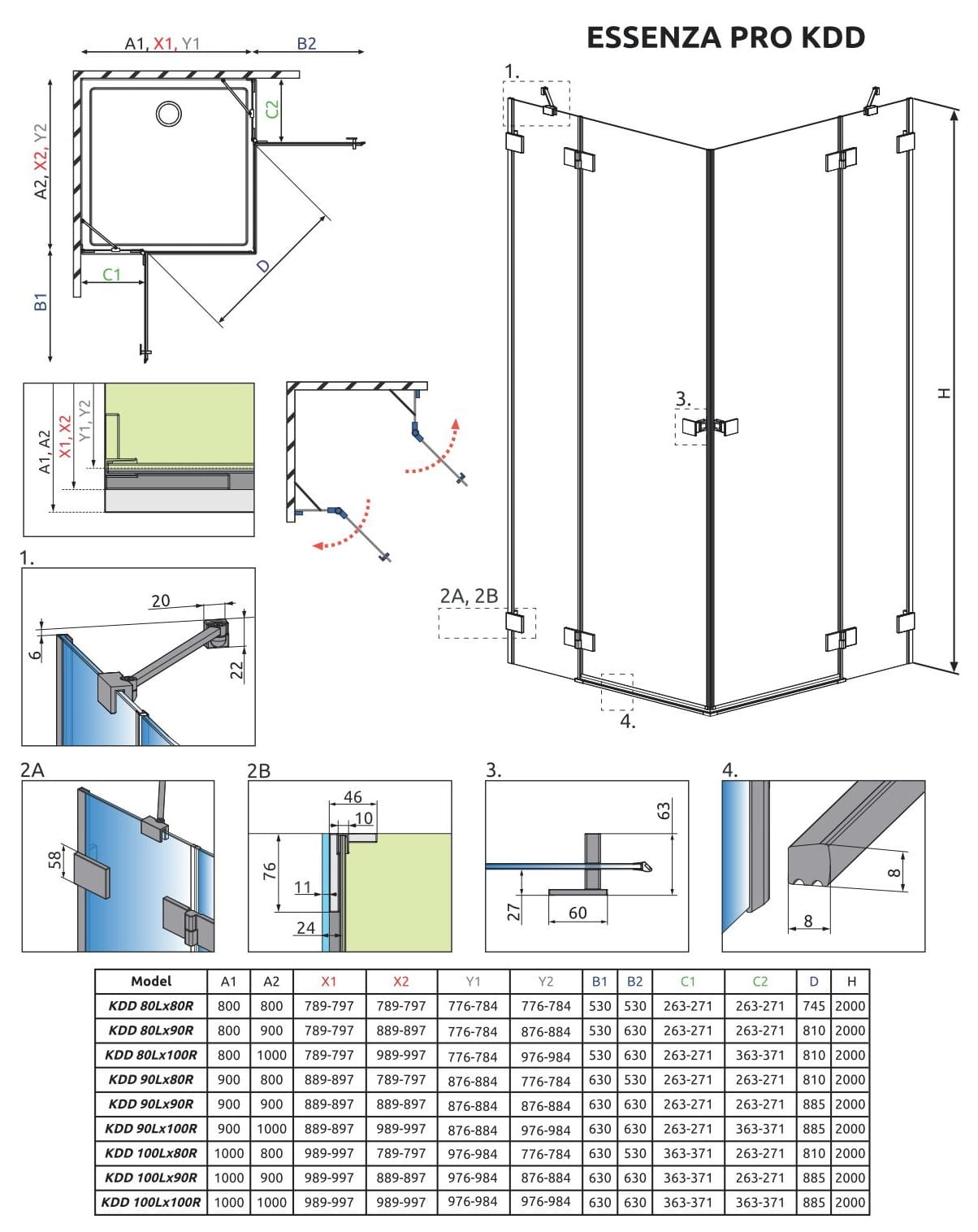 - Standardowo kabiny dopasowane są do montażu na brodziku o określonych wymiarach i właśnie te wymiary są podane w nazwie kabiny lub jej części. Rzeczywiste wymiary gabarytowe kabiny są nieco mniejsze od nominalnych podanych w nazwie artykułu. Jeśli planują Państwo montaż kabiny bezpośrednio na posadzce, proszę zwrócić uwagę na wymiary gabarytowe (X1, X2) oraz wymiary do osi szyby (Y1, Y2), które podane są na rysunku technicznym.