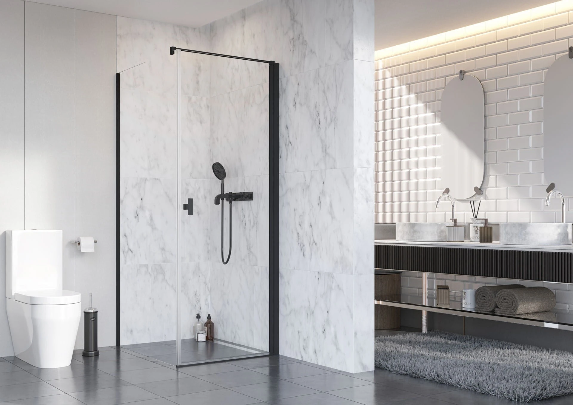 Seria Nes 8 Black powstała z myślą o osobach, które cenią sobie nowoczesne wzornictwo i najwyższą jakość wykonania. Czarne elementy kabiny nadadzą przestrzeni wyrazistości i podkreślą charakter łazienki.