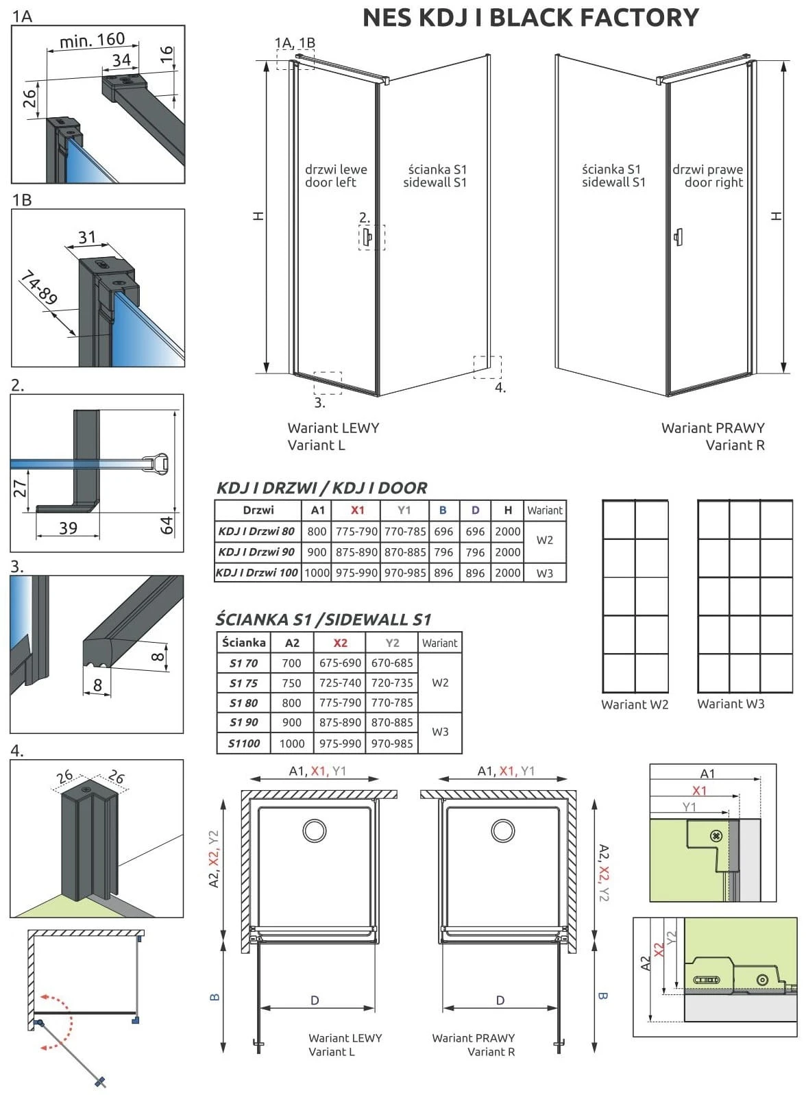 Kabina Radaway Nes Black KDJ I Factory 90x90x200 prawa