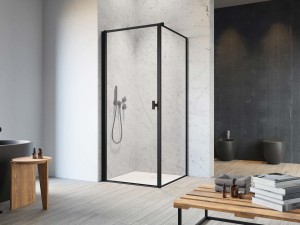 - Czarna ramka wykonana trwałą farbą ceramiczną. Dzięki zespoleniu zdobienia ze szkłem w procesie hartowania, kabinę wyróżnia trwałość, ponadprzeciętna jakość oraz odporność na ścieranie i promieniowanie UV.