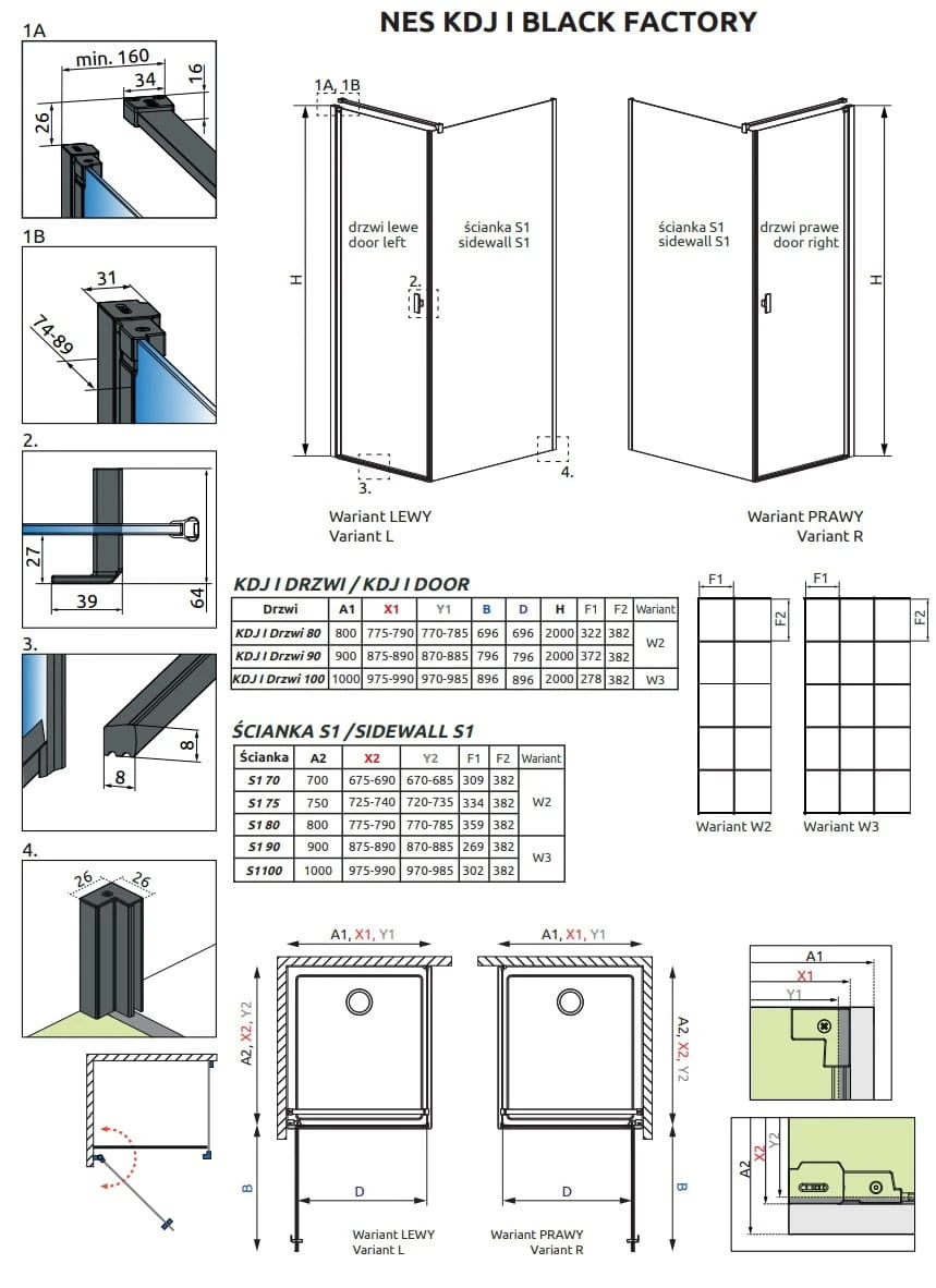 Kabina Radaway Nes 8 Black KDJ I Factory 80x80x200 prawa