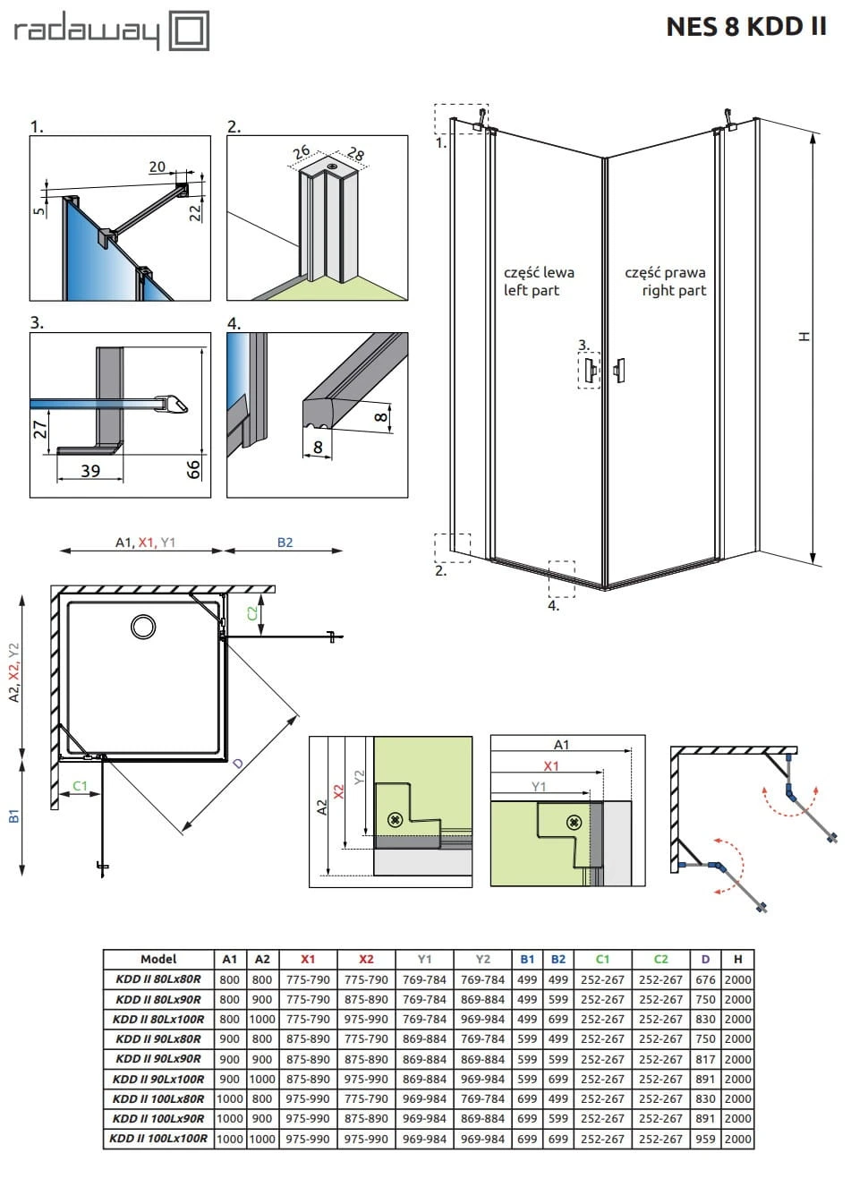 - Kabinę można zamontować na brodziku lub bezpośrednio na płytkach.