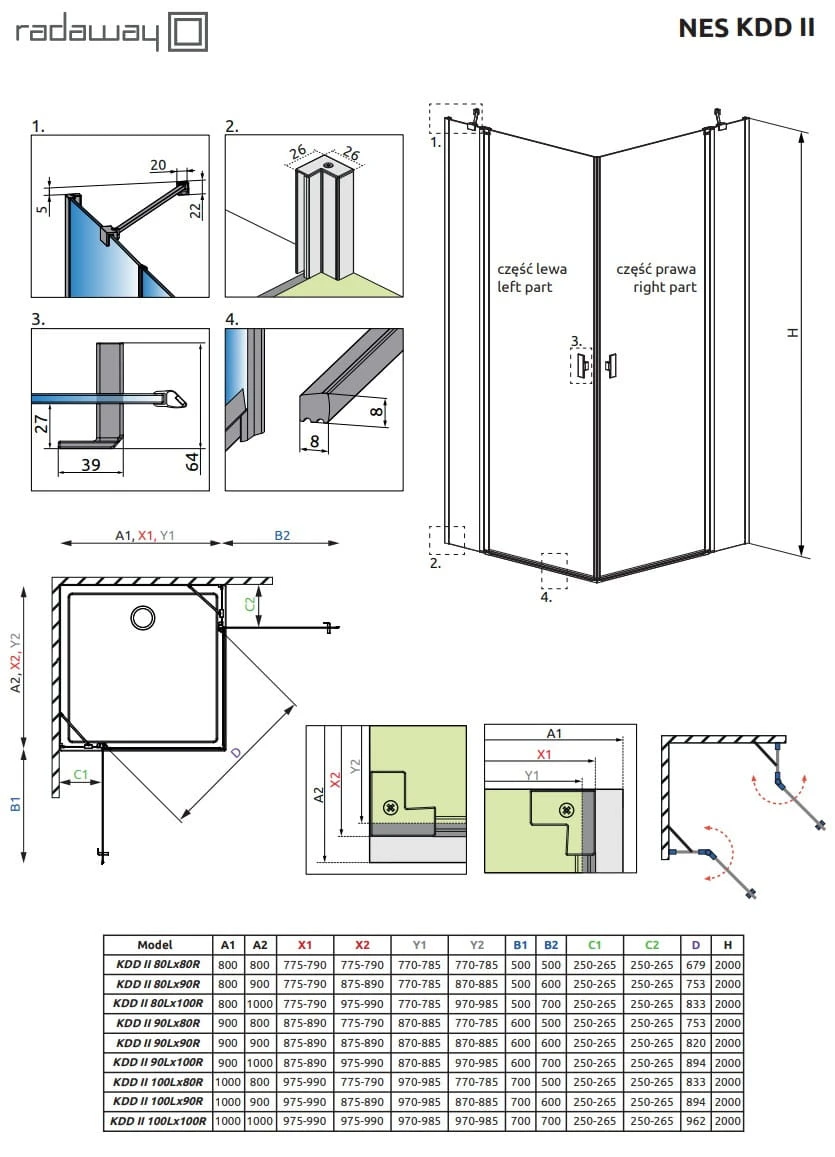 - Możliwość montażu bez listwy progowej: W standardzie otrzymają Państwo wszystkie komponenty potrzebne do montażu kabiny prysznicowej zarówno z listwą progową jak i bez listwy.