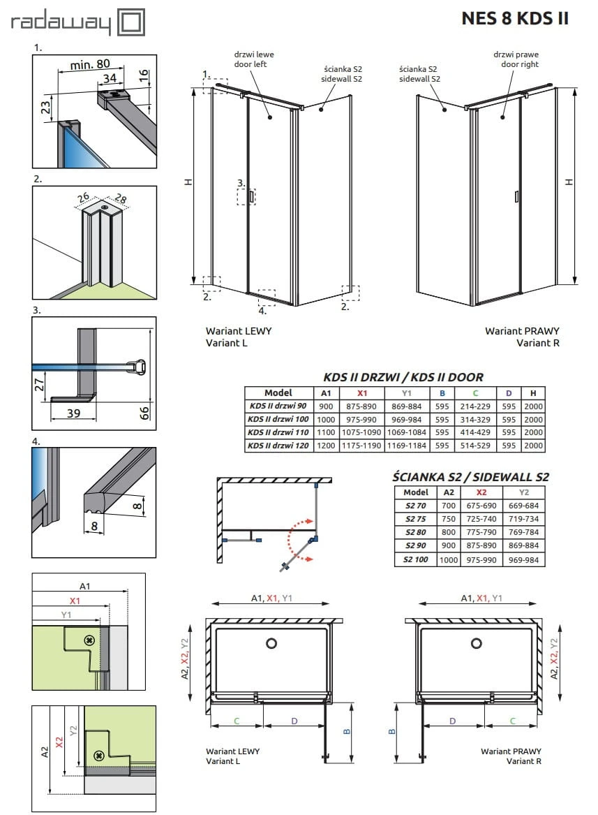 Kabina Radaway Nes 8 KDS II 90x90x200 lewa szkło przejrzyste