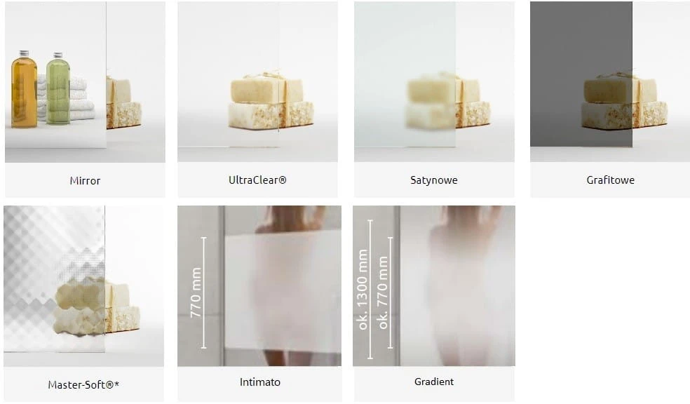 - Bezpieczne, hartowane szkło o grubości 6 mm pokryte powłoką EasyClean, która ułatwia utrzymanie kabiny w czystości. Dzięki powłoce EasyClean na powierzchni szkła osadza się mniej zanieczyszczeń i są one łatwiejsze do usunięcia. Oszczędzają Państwo czas, który należy poświęcić na czyszczenie standardowej kabiny. Oszczędzają Państwo środki czystości, gdyż do czyszczenia wystarczy miękka wilgotna ściereczka zamiast silnych środków chemicznych.