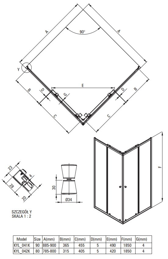 - Dolne rolki pozwalają na wypięcie drzwi i łatwiejszą pielęgnację kabiny