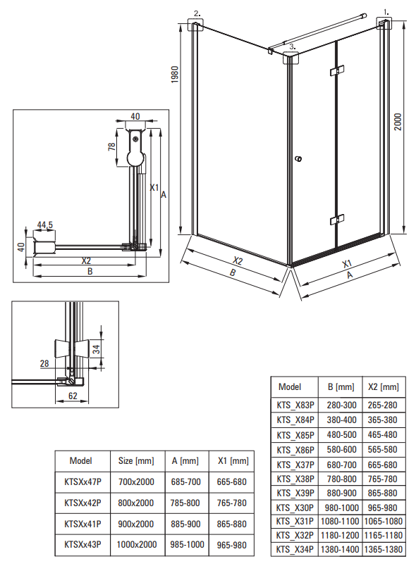 - Drzwi odwracalne umożliwiające montaż kabiny na prawą lub lewą stronę
