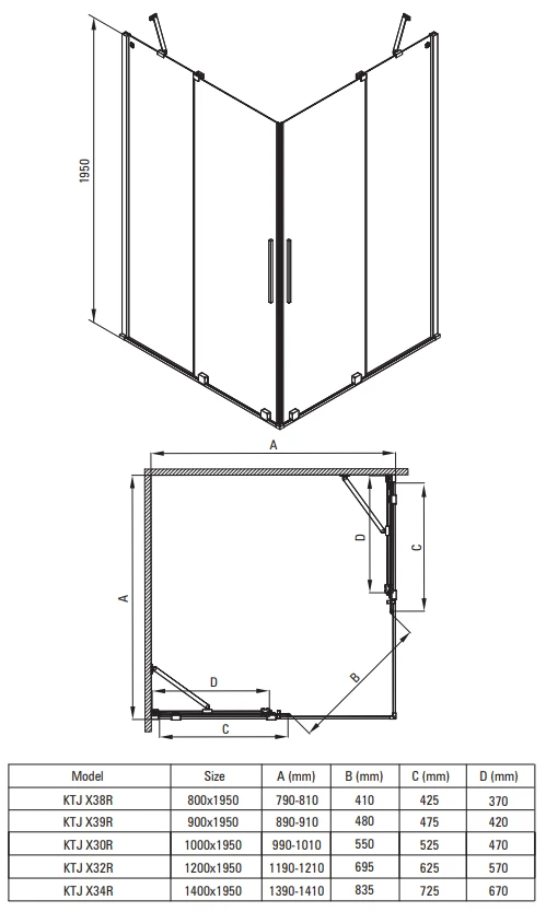 - Możliwość zamontowania kabiny bezpośrednio na płytkach lub na brodzikach granitowych Correo (KQR) i akrylowych Kerria Plus (KTS)