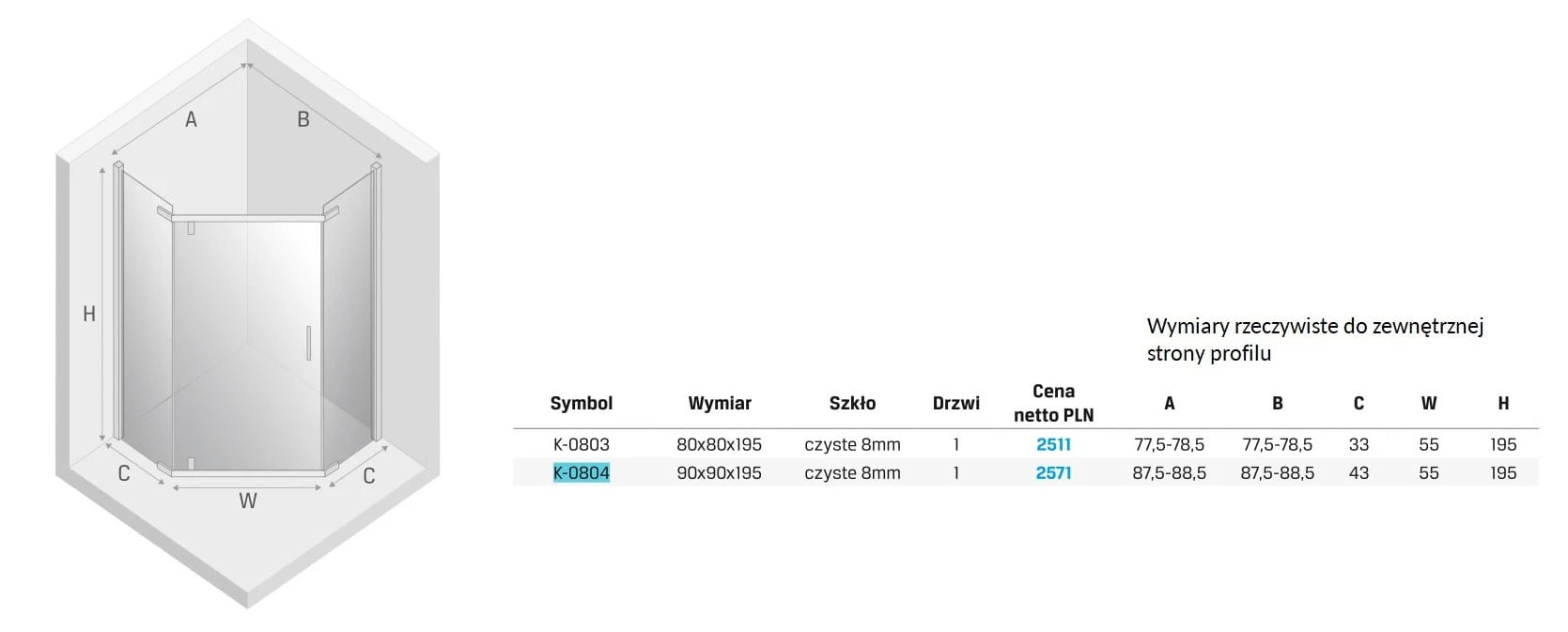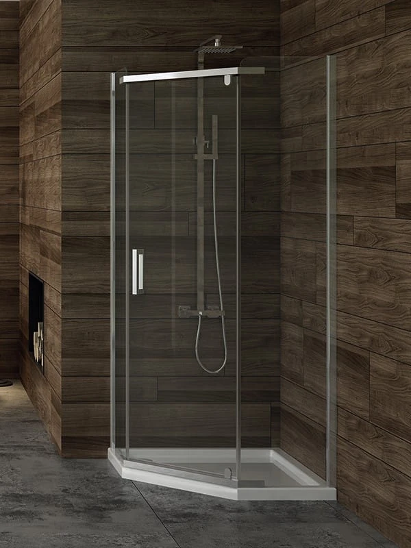 Wygodna kabina prysznicowa w klasycznym wydaniu o kształcie pięciokątnym. Optymalny wybór dla każdego, kto ceni skromną elegancję w wyposażeniu łazienki.