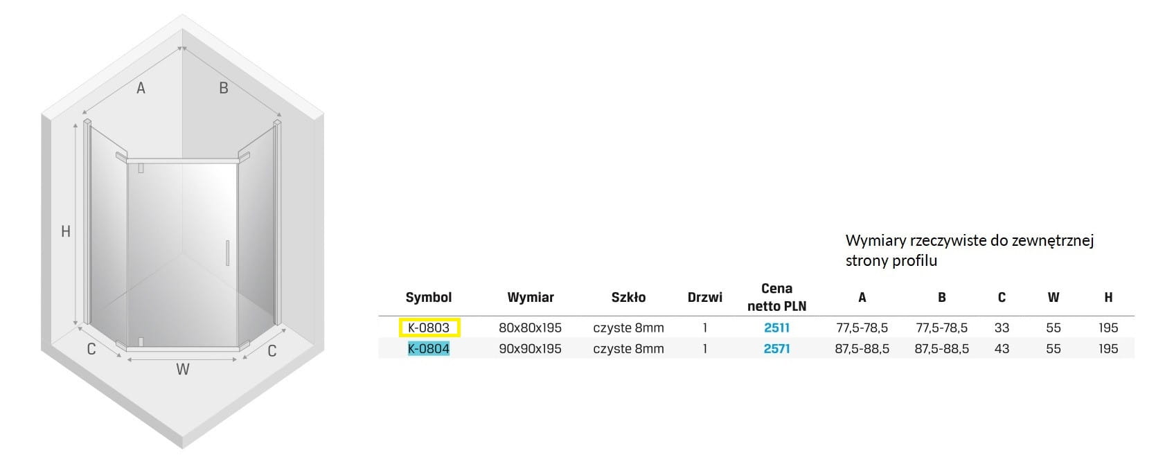 Kabina pięciokątna New Trendy New Komfort 80x80x195 szkło czyste