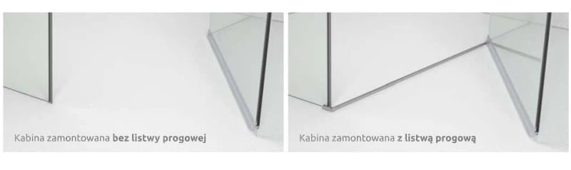 - Możliwość montażu bez listwy progowej: W standardzie otrzymają Państwo wszystkie komponenty potrzebne do montażu kabiny prysznicowej zarówno z listwą progową jak i bez listwy.