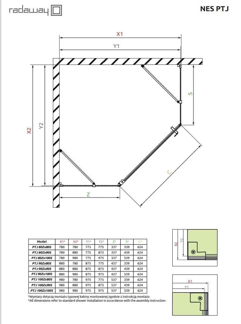 - Możliwość montażu bez listwy progowej: W standardzie otrzymają Państwo wszystkie komponenty potrzebne do montażu kabiny prysznicowej zarówno z listwą progową jak i bez listwy.