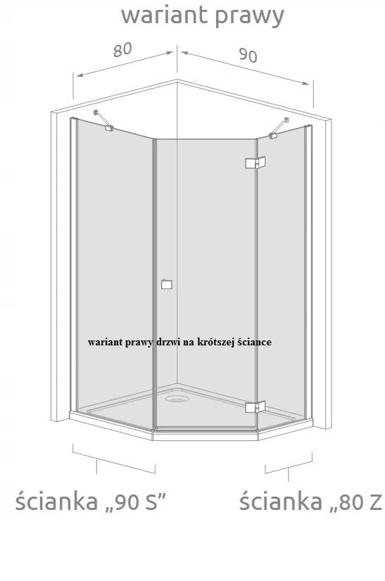 Kabina pięciokątna Radaway Nes Black PTJ 80x90x200 przejrzysta, prawa