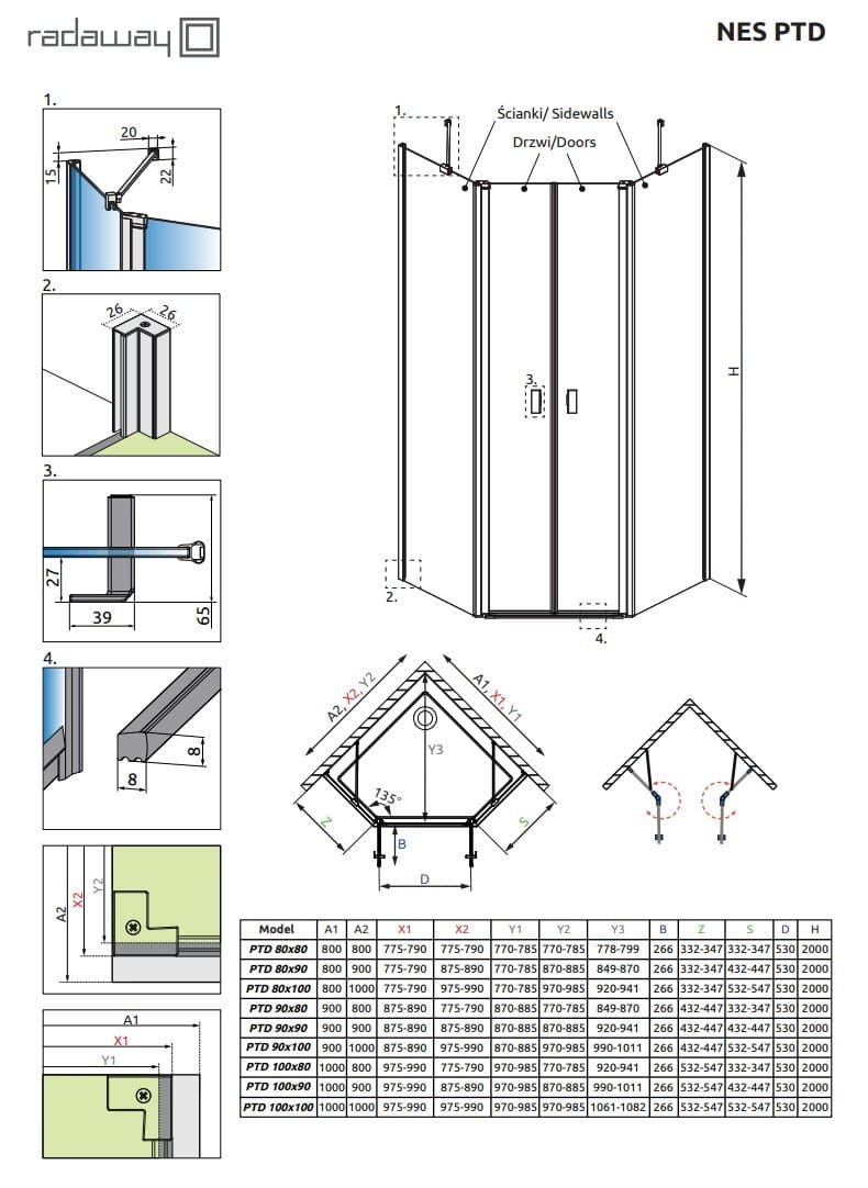 Kabina pięciokątna Radaway Nes PTD 90x90x200 przejrzysta
