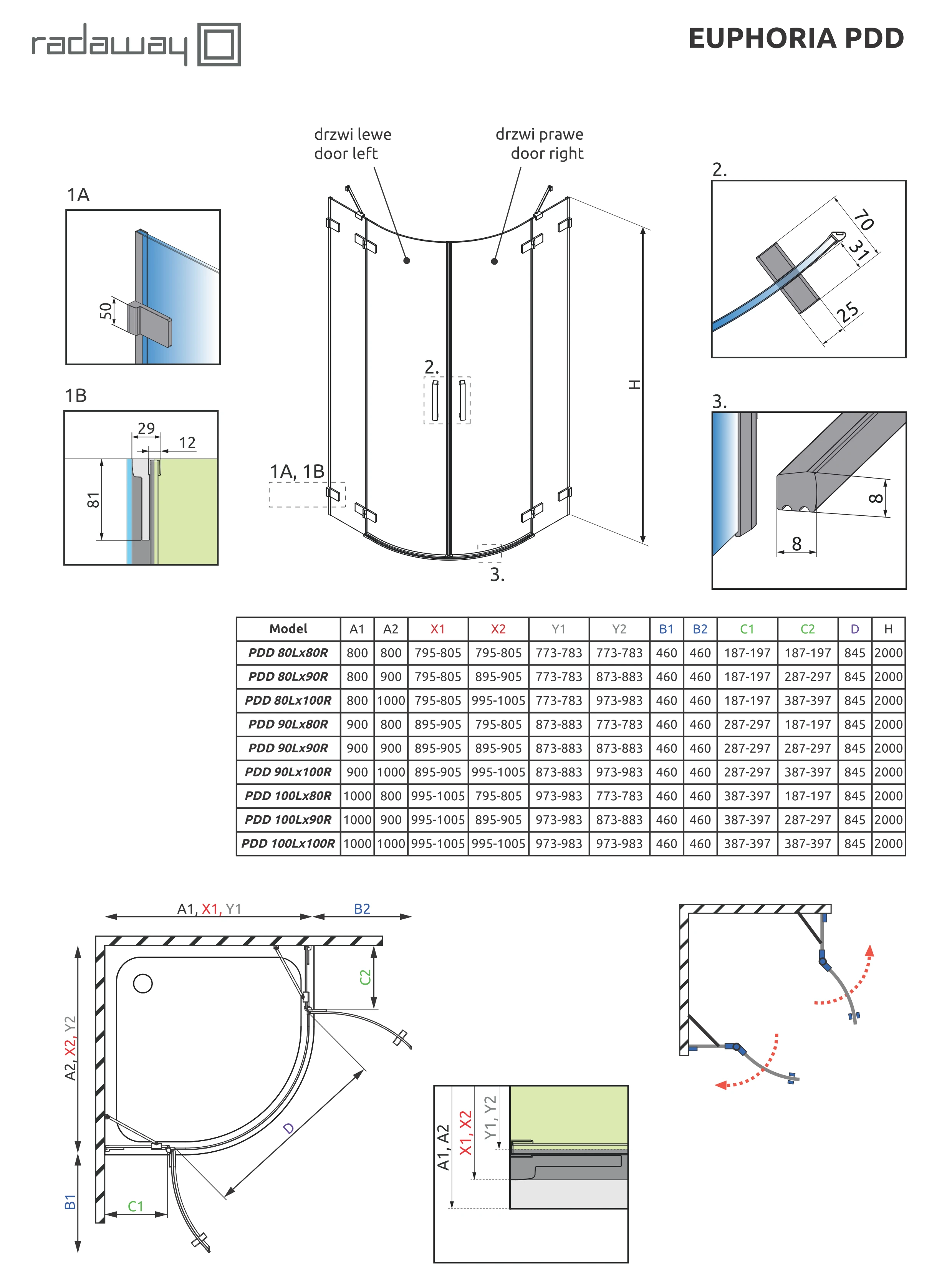 - Listwa magnetyczna zapewnia szczelność kabiny.