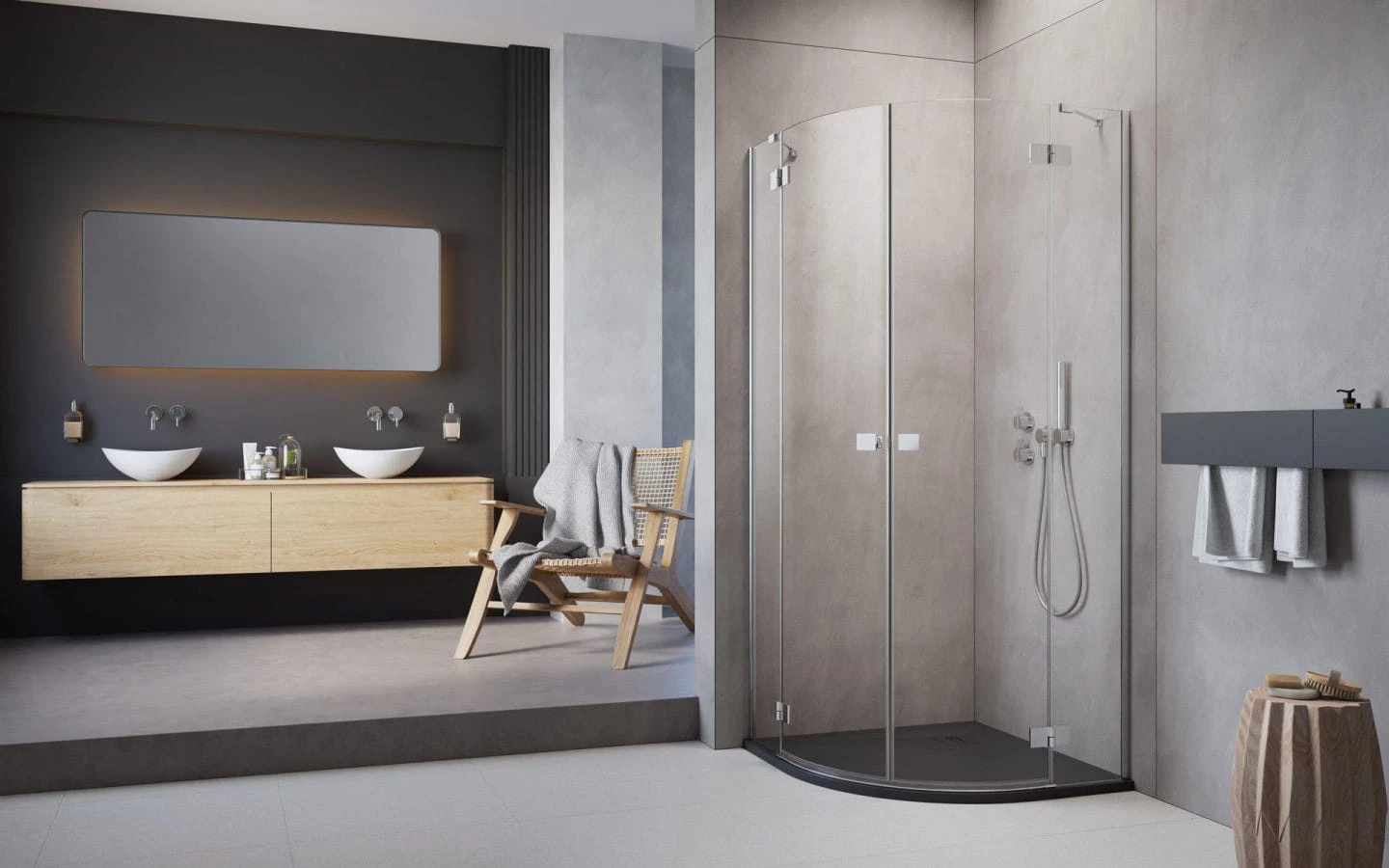 Seria kabin Essenza została zaprojektowana zgodnie z najnowszymi trendami w designie. Połączenie tafli szkła z eleganckim, chromowanymi detalami daje efekt lekkiej i estetycznej kabiny.