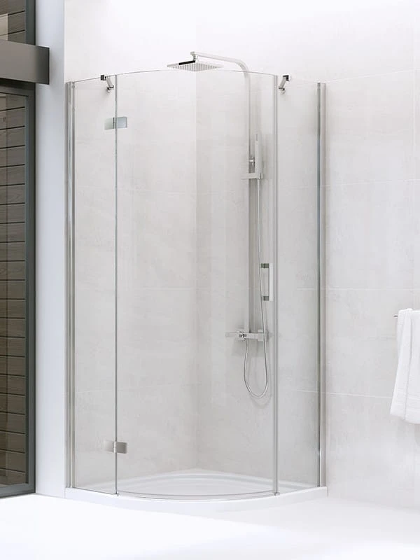 Kabina prysznicowa półokrągła z pojedynczymi drzwiami uchylnymi na zewnątrz.Popularny półokrągły kształt połączony z eleganckimi chromowanymi okuciami i pieczołowicie wypolerowanymi profilami doskonale sprawdzi się w każdym wnętrzu.