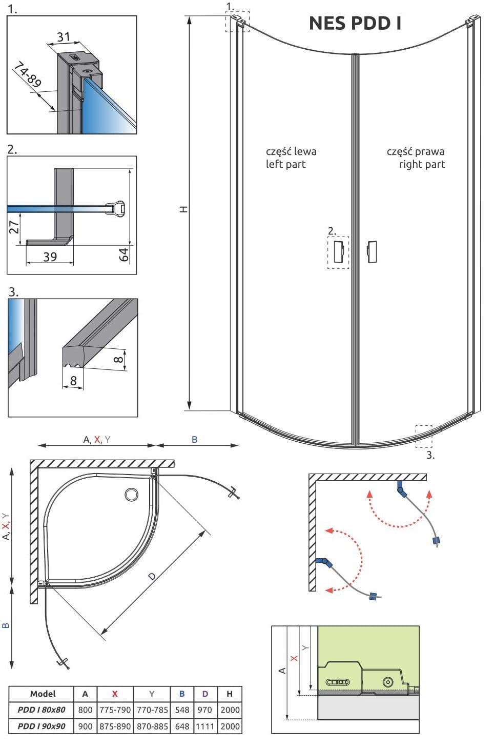 Nes to seria kabin z drzwiami wahadłowymi osadzonymi na zawiasach rurowych, wykonana ze szkła hartowanego o grubości 6 mm. W zależności od preferencji produkty z tej serii można zamontować zarówno z listwą progową, jak i bez listwy.