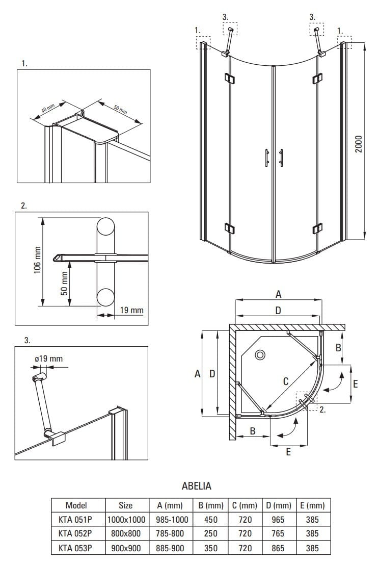 Kabina prysznicowa półokrągła 80x80x200 Abelia Deante