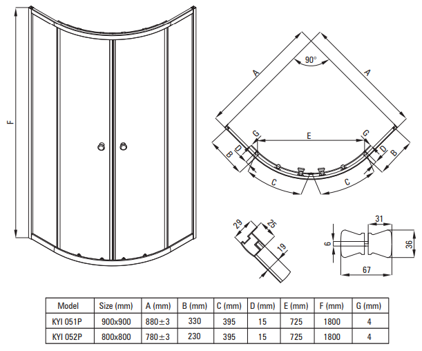 Kabina prysznicowa wykonana jest z wysokiej jakości szkła hartowanego. Jest ono bardzo odporne i sprężyste, zapewniając maksymalne bezpieczeństwo całej rodzinie. Części montażowe są estetycznie wykończone zgodnie z kolorystyką i stylistyką innych elementów z serii. Cała kabina jest bardzo przestronna. W komplecie z brodzikiem. Kształt półokrągły, o łagodnej krzywiźnie. Rozmiar 90x90 cm.