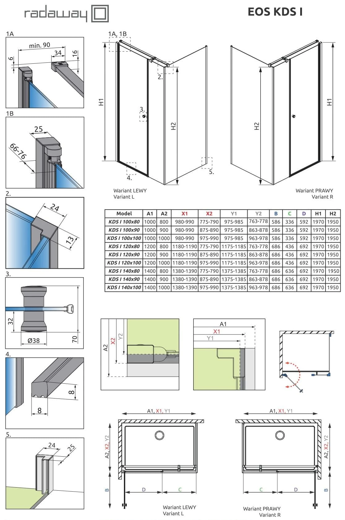 - Kabinę można zamontować na brodziku lub bezpośrednio na płytkach. Możliwość montażu bez listwy progowej.