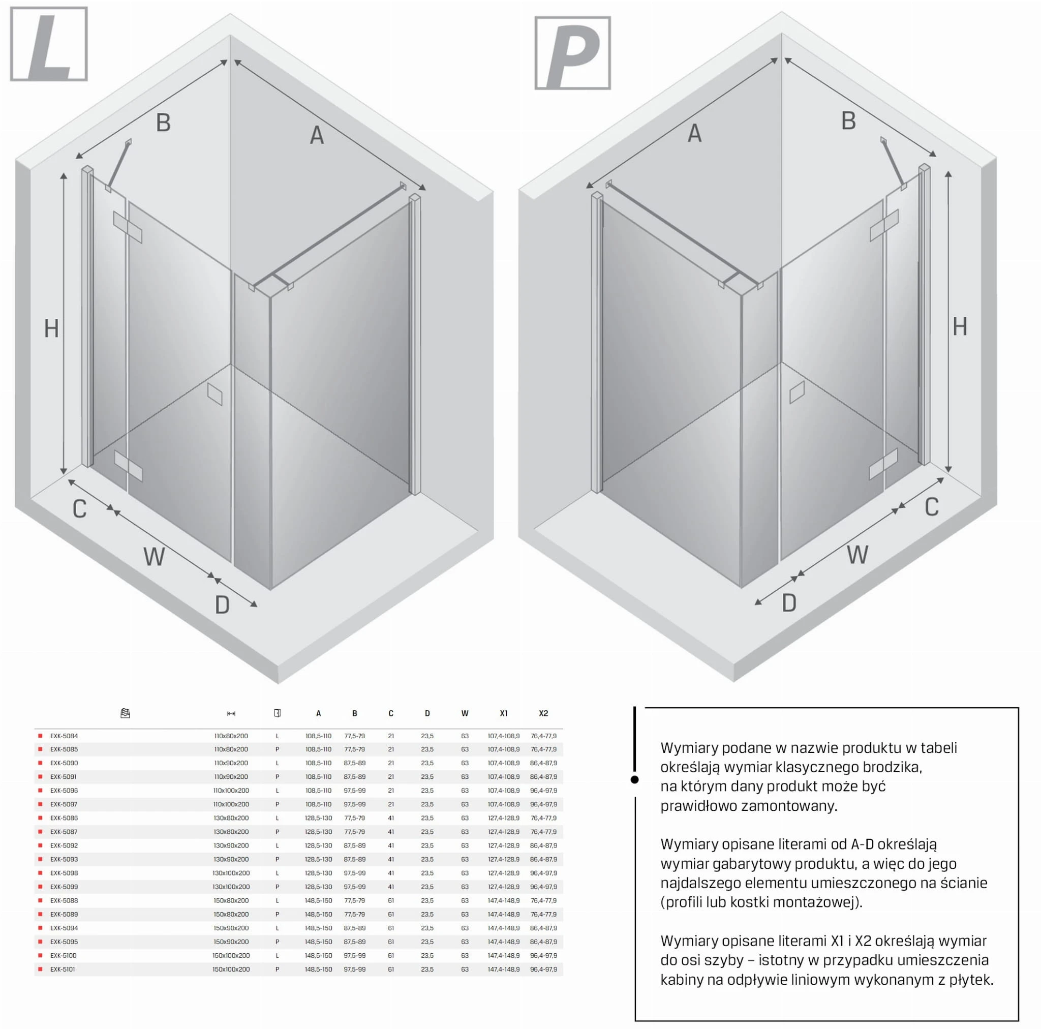 - drzwi 110 cm, ścianka boczna 90 cm,