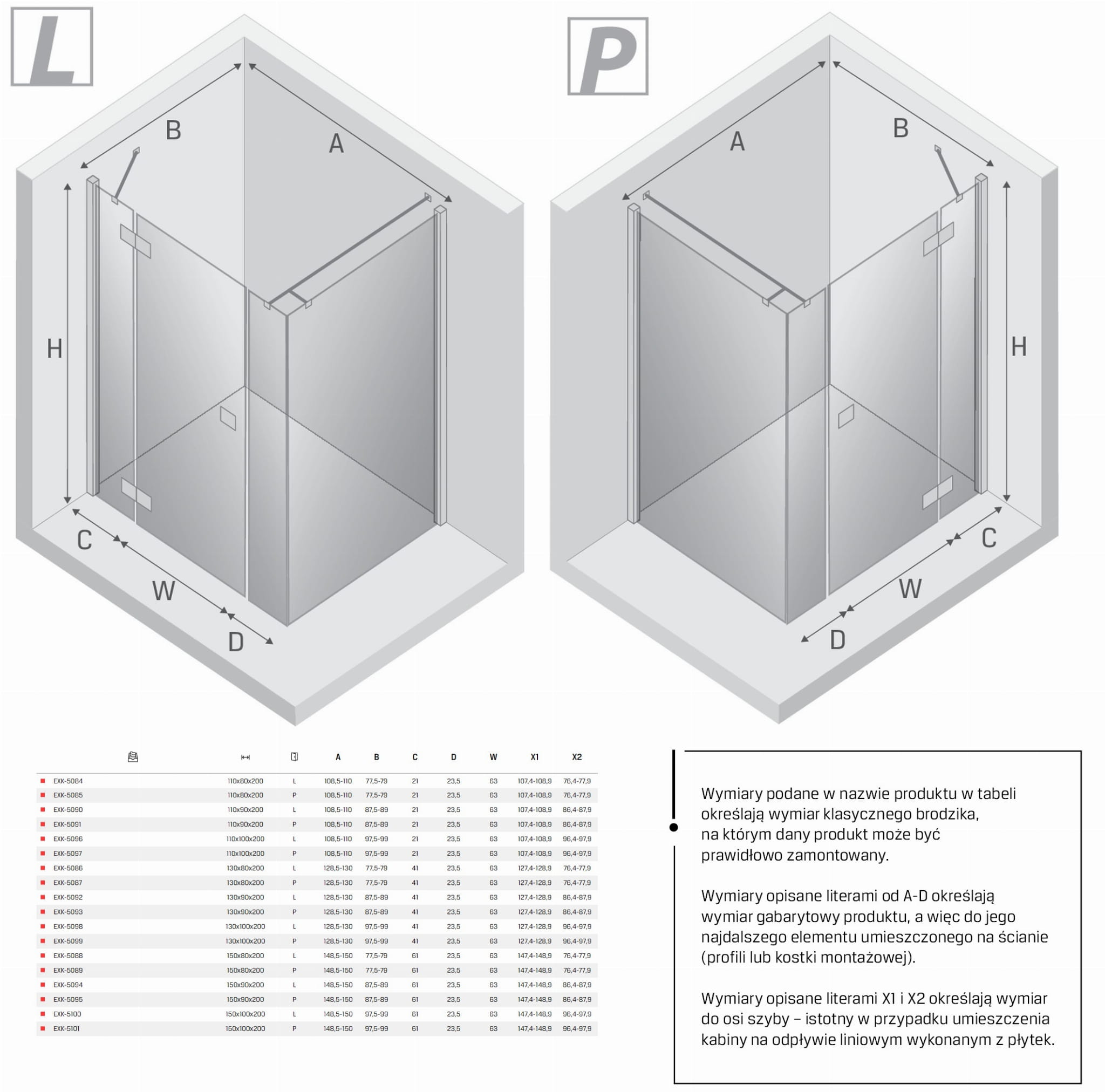 - kabinę można zamontować z listwą progową lub bez listwy. W przypadku montażu bez listwy należy zastosować uszczelkę z przedłużonym listkiem, aby pomiędzy szybą a podłogą nie pozostała szczelina. Listwa progowa i dodatkowa uszczelka są w zestawie.