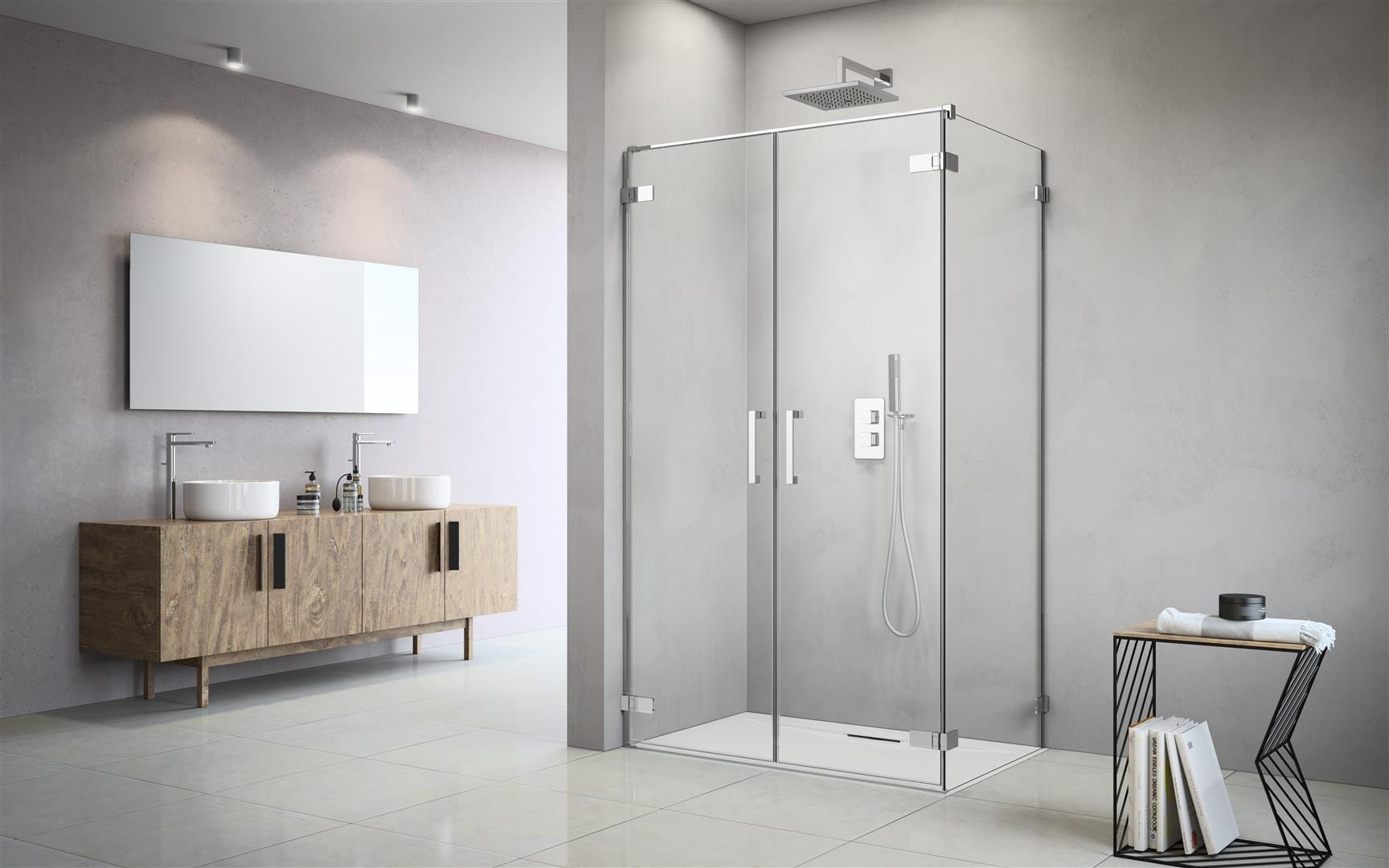 - Eleganckie detale - wykonane w standardzie w technologii Chrome+ charakteryzującej się większym połyskiem i pozwalającej na lepsze dopasowanie kabin do baterii łazienkowych.