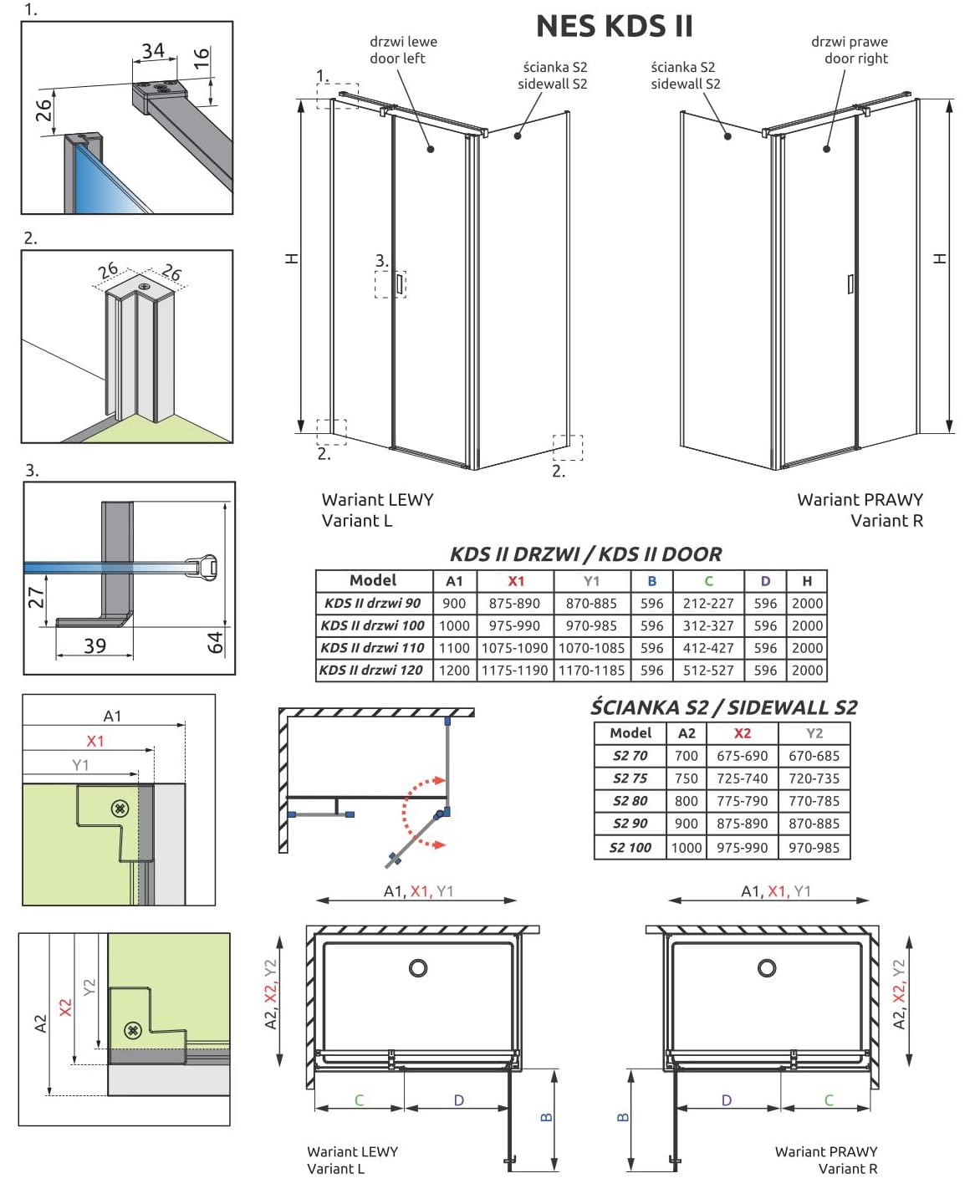 - Możliwość montażu bez listwy progowej: W standardzie otrzymają Państwo wszystkie komponenty potrzebne do montażu kabiny prysznicowej zarówno z listwą progową jak i bez listwy.