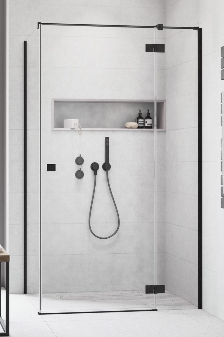 Kabiny Essenza 8 Black KDJ zostały zaprojektowane zgodnie z najnowszymi trendami w designie. Połączenie tafli szkła o grubości 8 mm z czarnymi detalami daje efekt lekkiej i estetycznej kabiny.