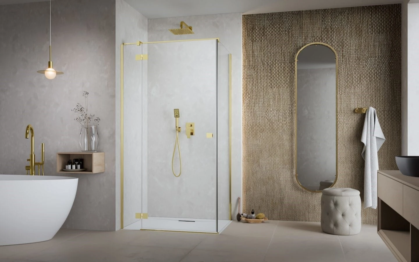 Kabiny Essenza 8 Gold KDJ zostały zaprojektowane zgodnie z najnowszymi trendami w designie. Połączenie tafli szkła o grubości 8 mm ze złotymi detalami daje efekt lekkiej i estetycznej kabiny.