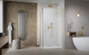 Kabiny Essenza 8 Gold KDJ zostały zaprojektowane zgodnie z najnowszymi trendami w designie. Połączenie tafli szkła o grubości 8 mm ze złotymi detalami daje efekt lekkiej i estetycznej kabiny.