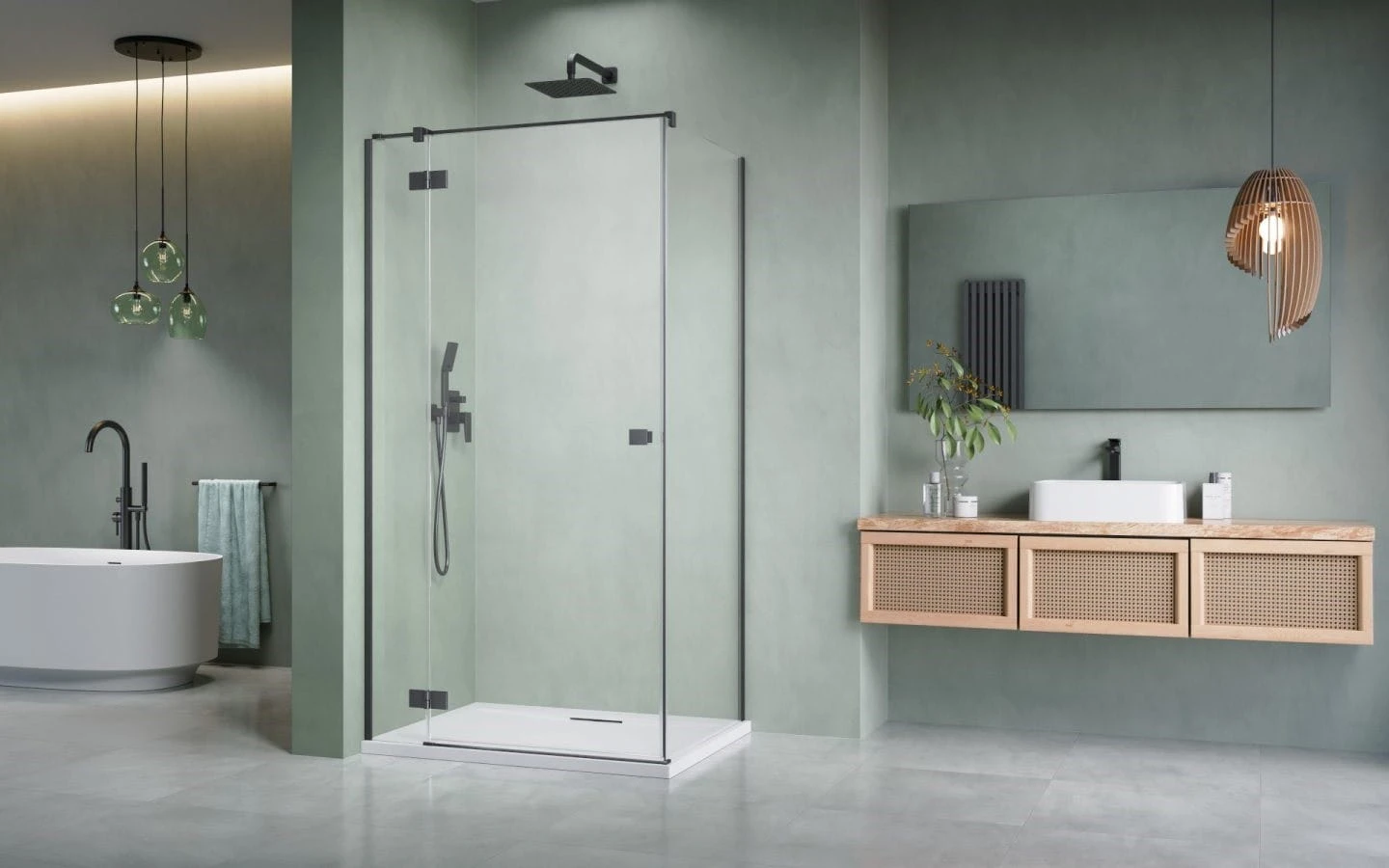 - Zawiasy zostały zlicowane z taflą szkła - jednolita powierzchnia ułatwiająca czyszczenia kabiny.