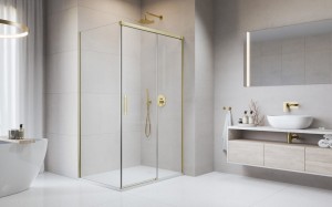 Kabiny Idea 8 Brushed Gold KDJ to wynik designerskiego połączenia szkła o grubości 8 mm z eleganckimi detalami w kolorze szczotkowanego złota – doskonale sprawdzą się we wnętrzu o minimalistycznym stylu , ale równie harmonijnie będą współgrać ze stylem klasycznym. Są to kabiny dla osób ceniących dobry design, które preferują geometryczne formy składające się w proporcjonalną całość.