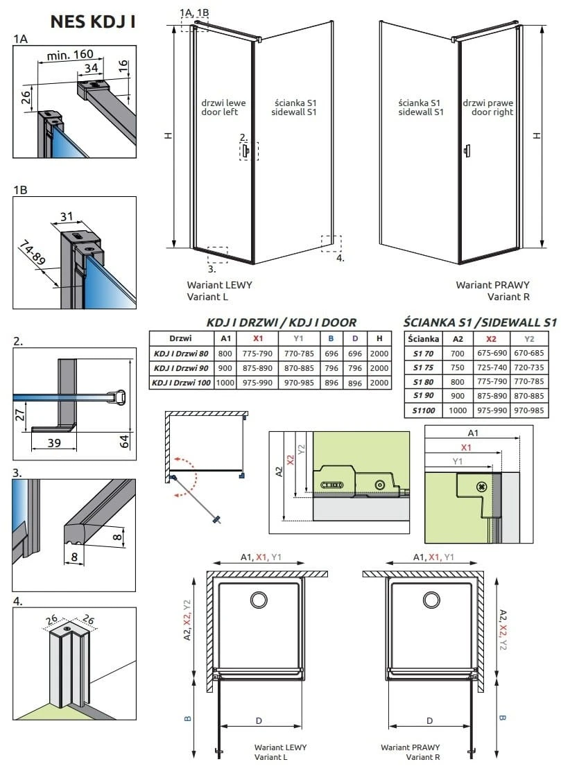 - Standardowo kabiny dopasowane są do montażu na brodziku o określonych wymiarach i właśnie te wymiary są podane w nazwie kabiny lub jej części. Rzeczywiste wymiary gabarytowe kabiny są nieco mniejsze od nominalnych podanych w nazwie artykułu. Jeśli planują Państwo montaż kabiny bezpośrednio na posadzce, proszę zwrócić uwagę na wymiary gabarytowe (X1, X2) oraz wymiary do osi szyby (Y1, Y2), które podane są na rysunku technicznym.