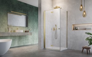 Nes Brushed Gold to seria kabin wykonana ze szkła hartowanego o grubości 6 mm z detalami w kolorze szczotkowanego złota.