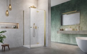 Nes Brushed Gold to seria kabin wykonana ze szkła hartowanego o grubości 6 mm z detalami w kolorze szczotkowanego złota.