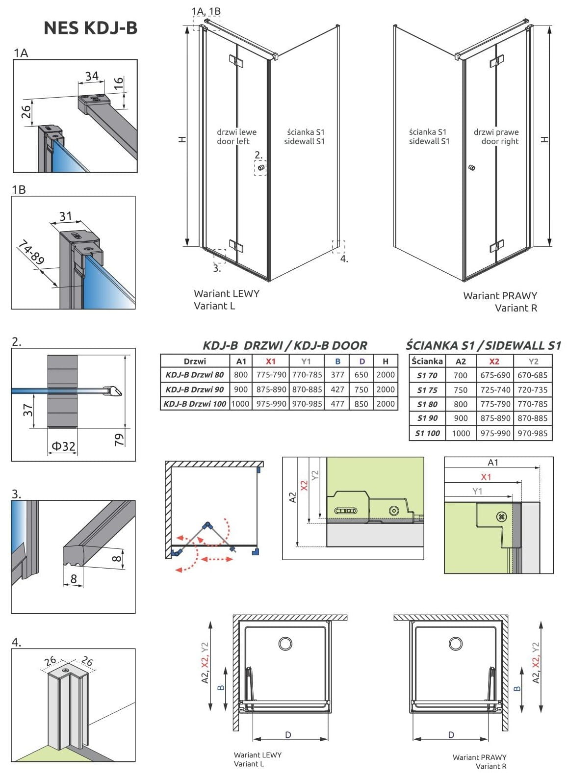 - Możliwość montażu bez listwy progowej: W standardzie otrzymają Państwo wszystkie komponenty potrzebne do montażu kabiny prysznicowej zarówno z listwą progową jak i bez listwy.