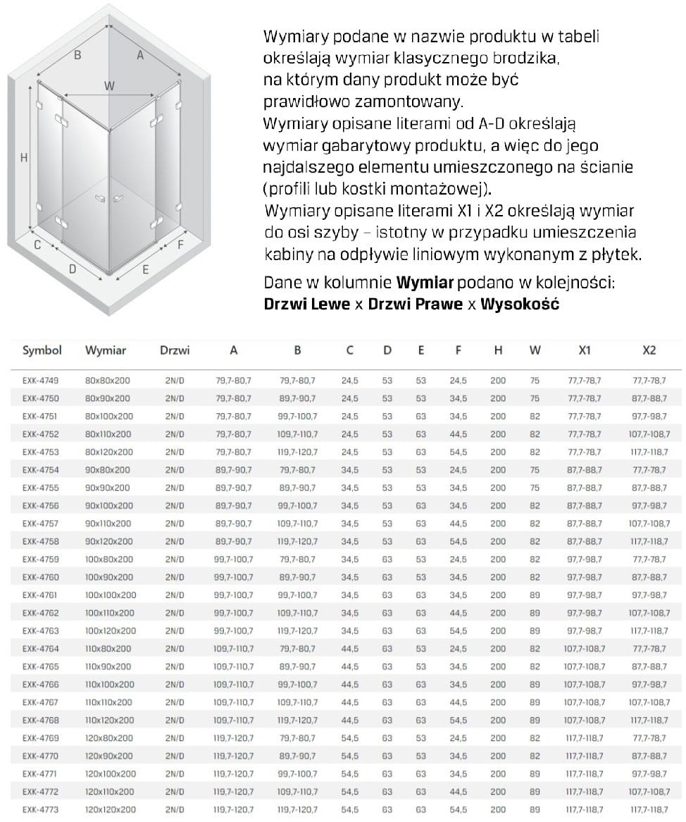 - Przedmiotem sprzedaży jest kabina w szkle przejrzystym bez brodzika.