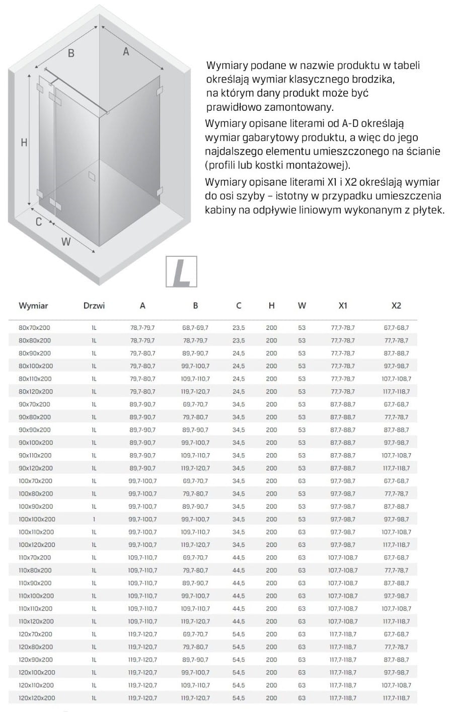 - Dłuższy Bok 80cm, 90cm, 100cm, 110cm, 120cm